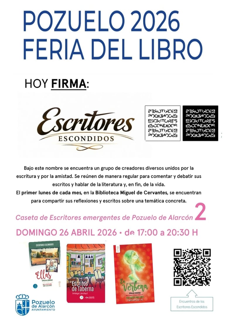 Este domingo por la tarde, el colectivo Escritores Escondidos estará presente en la Feria del Libro de Pozuelo de Alarcón para compartir una de las cosas más bonitas que nos une: la cercanía con nuestros lectores.