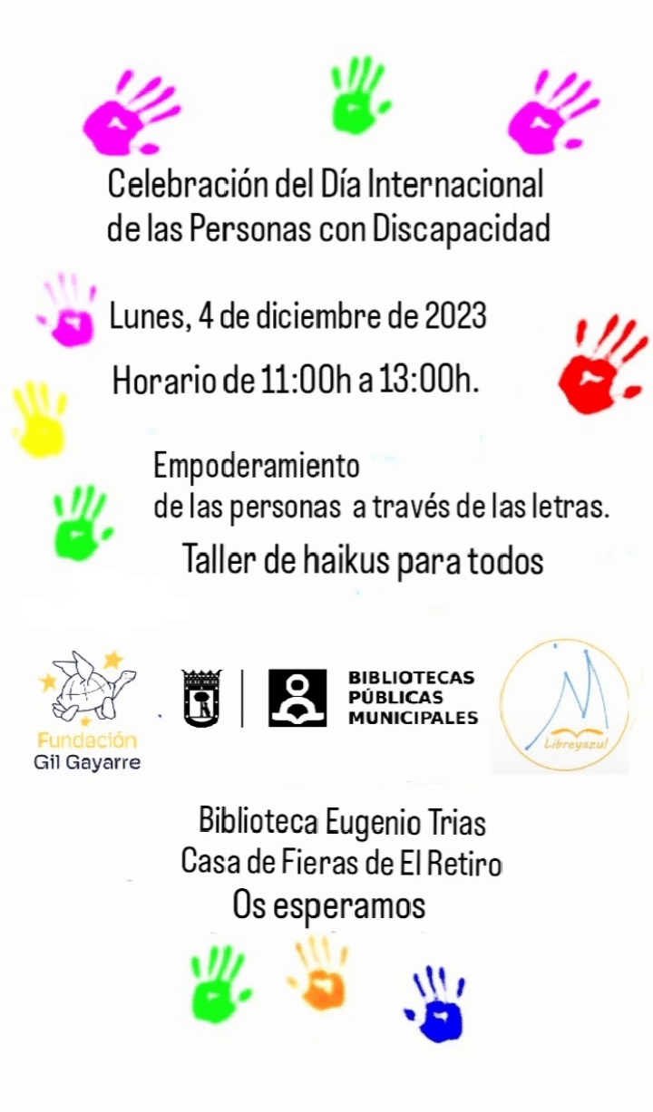 Queremos invitarte al evento que tendrá lugar el 4 de diciembre en La Biblioteca Eugenio Trías de El Retiro. Este día especial reunirá a personas interesadas en un taller de animación de lectura y poesía organizado por La Fundación Gil Gayarre. En colaboración con Libreyazul y el poeta Manuel Barranco Roda