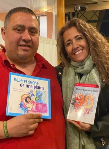 Manuel Barranco Roda, conocido por muchos como Lolotónico, nació en Madrid el 24 de febrero de 1975 y cursó sus estudios en Pozuelo de Alarcón. Su pasión por la poesía, el teatro y las artes lo ha llevado a participar en numerosos concursos literarios, destacando su Accésit en el concurso "Crea Pozuelo de Alarcón" en 2007. Es el fundador de Escritoress Escondidoss y ha publicado cinco libros de poesía, entre ellos "La rutina convertida en poesía", "Telaraña del Tiempo", "La Luna te mira desde el otro lado", "Los Versos Escondidos" y "90 Dalias pintadas en verso". También ha publicado un libro de aforismos llamado "Una frase para todo" y otro de relatos titulado "Lolotónico". Además, ha contribuido en numerosas antologías benéficas.