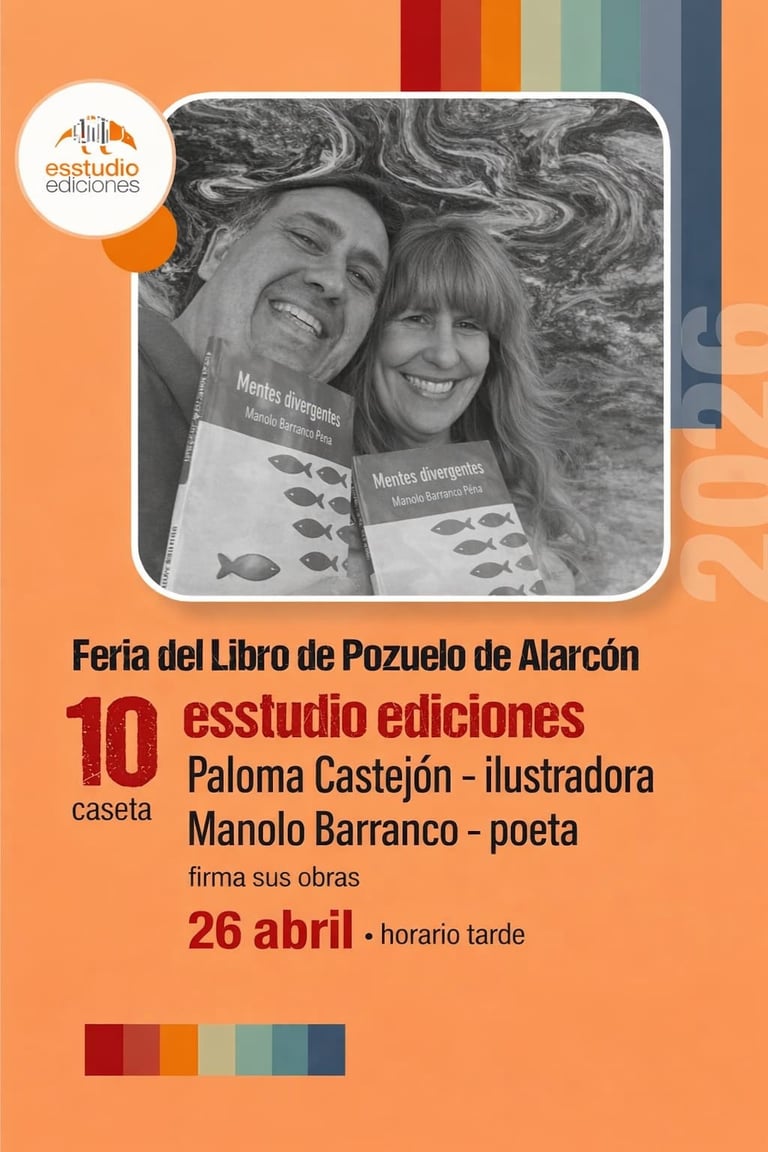 Desde LibreYazul, en colaboración con la editorial Esstudio Ediciones, te invitamos a un encuentro muy especial con Manolo Barranco, poeta, y Paloma Castejón, ilustradora, con motivo de la firma de libros y presentación de su obra conjunta Mentes divergentes.